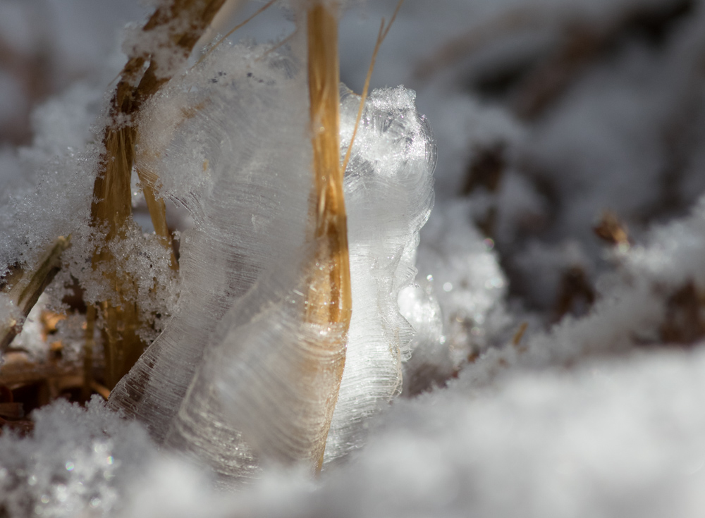 どちらも気温があがると消えてしまうのだが、ふわっと覆う雪と透明感のある氷の冴え冴えとした氷花が白さを競い合っているようだ。